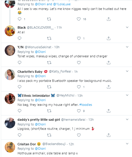 Ladies on Twitter have revealed some of the necessary things they always have in their bags during d*ck appointment and it's hilarious.