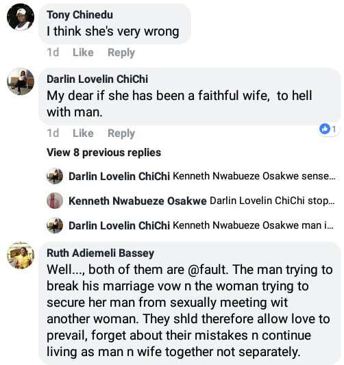 Read the post below and see reactions of Nigerians in support and against the woman's action.
