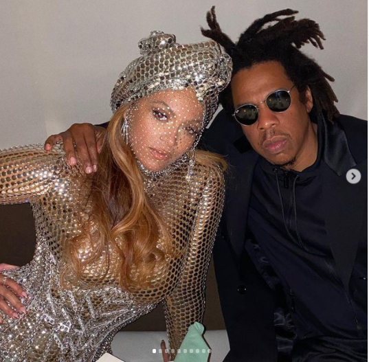 Power couple, Beyonce and Jay-Z put on rare displays of affection after their historic wins at the Grammy Awards over the weekend. The mother of three took home four Grammys on Sunday to become the most-awarded female singer in the Recording Academy’s history with 28 awards. Among the accolades were best R&B performance for 'Black Parade' and best music video for 'Brown Skin Girl.' Her husband, Jay Z also won two Grammys this year. The 51-year-old rapper is listed as a songwriter on Beyonce’s Black Parade and Megan Thee Stallion’s Savage remix, both of which won awards bringing his total Grammys to 23. He’s still the most awarded rapper in Grammys history. The couple were later pictured backstage after the awards show celebrating their wins. In one photo shared on Beyonce's Instagram page, the singer is seen planting a kiss on Jay-Z's cheek as he smiles at the camera. Another photo shows the couple posing and holding hands with Beyonce showing off her second outfit of the night – a silver gown with matching turban and Lorraine Schwartz jewellery. She had earlier worn a black leather minidress for the official ceremony.