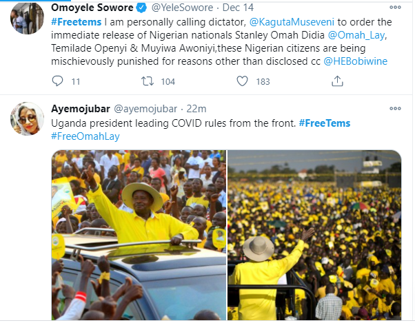 Nigerians are currently reacting in anger on Twitter after fast-rising stars Omah Lay and Tems were arrested for flouting COVID-19 guidelines in Uganda.